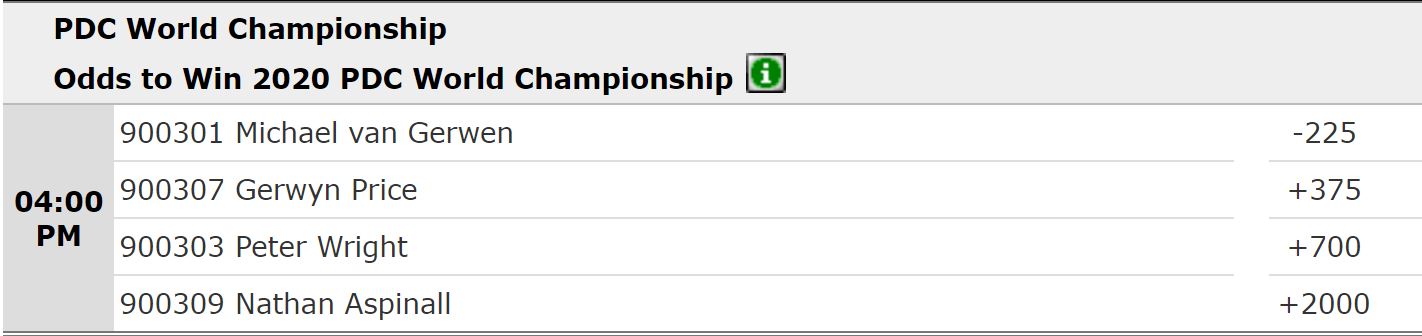 Like taking the futures bet on van Gerwen, bettors should consider taking Wright at +700 to win the entire William Hill World Championship. If Wright can get past Price, the odds set for the final matchup will give bettors an easy arbitrage betting chance. With a little faith, Wright can have bettors making a much higher profit than only choosing him to beat Price.
